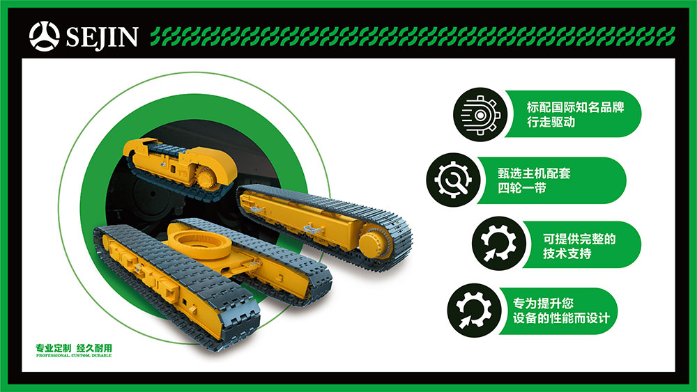 世珍履帶成立于2005年,是一家履帶底盤創(chuàng)新品牌的制造商。利用自身生產(chǎn)引導(dǎo)輪驅(qū)動(dòng)齒的優(yōu)勢(shì)和卓越的設(shè)計(jì)能力開始集成履帶底盤設(shè)計(jì)、生產(chǎn)和銷售,可以提供世界最高水平的定制履帶解決方案并實(shí)現(xiàn)快速交付。世珍履帶底盤標(biāo)配國際知名品牌減速機(jī)馬達(dá),甄選主機(jī)配套高品質(zhì)四輪一帶,具有耐用性長,耐寒性強(qiáng),性價(jià)比高等優(yōu)勢(shì)。
