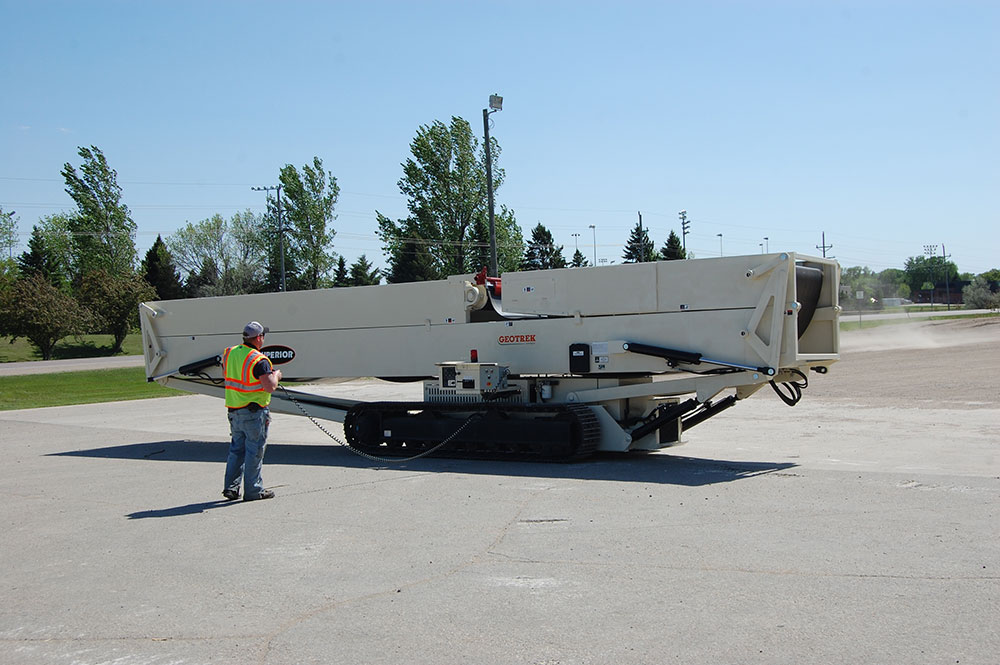 履帶式移動(dòng)破碎站利用履帶行走,可實(shí)現(xiàn)原地轉(zhuǎn)向,標(biāo)準(zhǔn)配置,通過無線遙控操縱,極易把破碎機(jī)開到拖車上,并將其運(yùn)送至作業(yè)地點(diǎn)。履帶底盤作為履帶式移動(dòng)破碎站中的重要一環(huán),履帶底盤的選擇是關(guān)鍵。