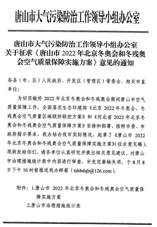 為切實(shí)做好2022年北京冬奧會(huì)和冬殘奧會(huì)(以下簡(jiǎn)稱冬奧 會(huì))期間唐山市空氣質(zhì)量保障工作,全面落實(shí)生態(tài)環(huán)境部《北京 2022年冬奧會(huì)、冬殘奧會(huì)空氣質(zhì)量區(qū)域聯(lián)防聯(lián)控方案》和《河 北省2022年北京冬奧會(huì)和冬殘奧會(huì)空氣質(zhì)量保障方案》安排和部署,結(jié)合唐山實(shí)際,特制定本方案。