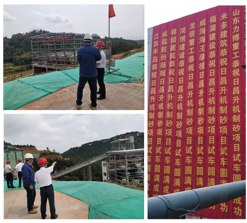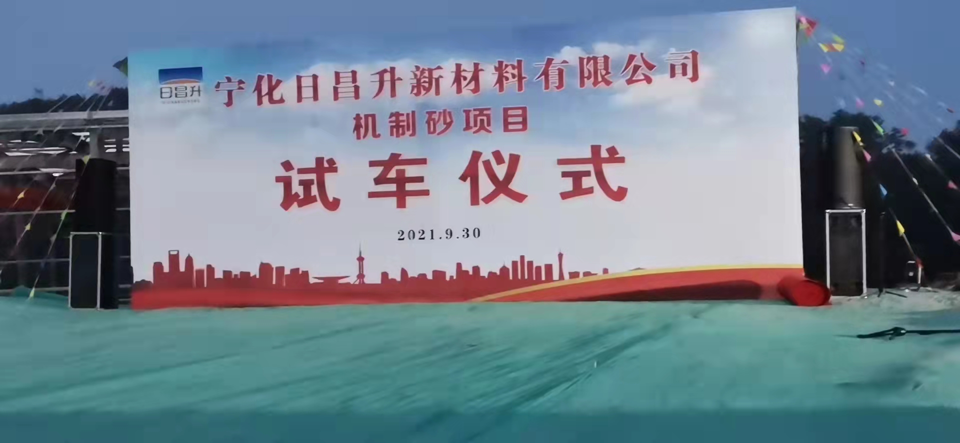 2021年9月30日,寧化日昌升新材料機(jī)制砂項(xiàng)目試車儀式正式開啟,現(xiàn)場(chǎng)拱門條幅高掛,機(jī)械共震,一片繁忙景象,隨著機(jī)制砂生產(chǎn)線傳輸?shù)牡谝欢褭C(jī)制砂的落地,生產(chǎn)線順利安裝調(diào)試完畢并正式投入使用!