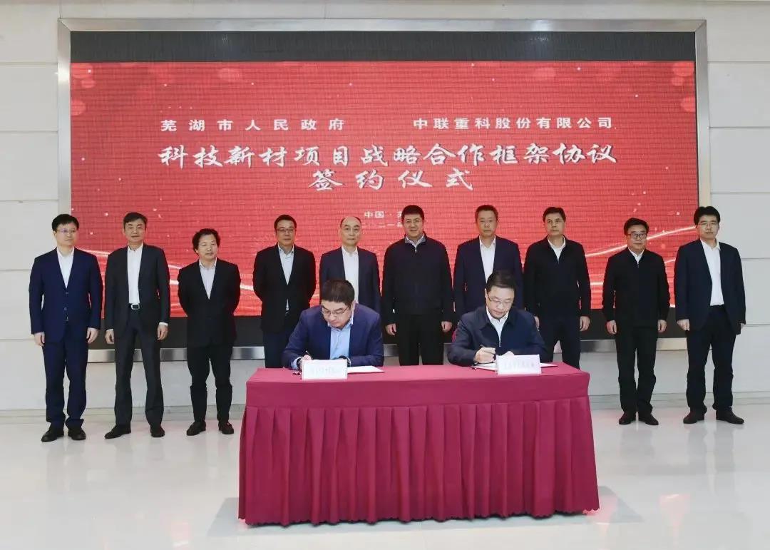 日前,安徽蕪湖市政府與中聯(lián)重科簽署科技新材料項(xiàng)目戰(zhàn)略合作框架協(xié)議。中聯(lián)重科董事長、CEO詹純新,市委書記單向前,市委副書記、市長寧波出席儀式并見證簽約。市領(lǐng)導(dǎo)張志宏,市政府秘書長王志鵬參加。
