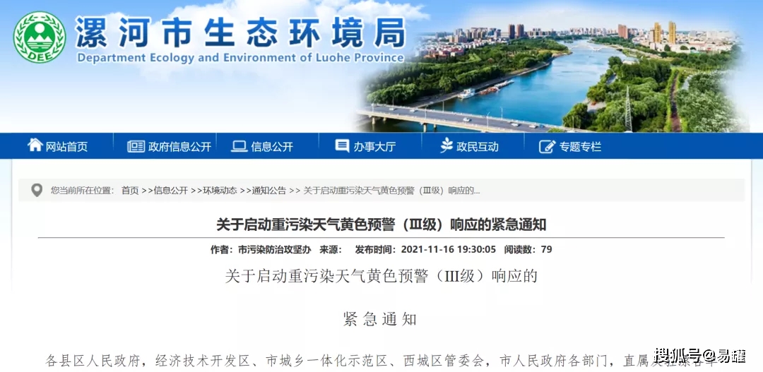 漯河市自11月16日20時起,在全市范圍內(nèi)啟動重污染天氣黃色預(yù)警(Ⅲ級)應(yīng)急響應(yīng)。要求嚴(yán)格機(jī)動車管控: