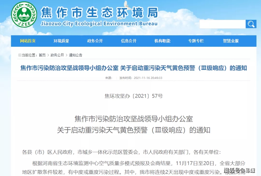 經(jīng)焦作市污染防治攻堅辦研究決定,自2021年11月16日22時起,啟動重污染天氣黃色(Ⅲ級)預(yù)警響應(yīng)。在移動源減排措施方面要求: