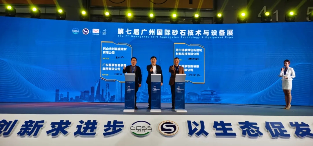 上午9時(shí)30分,第七屆廣州國際砂石技術(shù)與設(shè)備展開幕式隆重舉行,磊蒙集團(tuán)董事長張宏強(qiáng)作為廣東省砂石分會(huì)副會(huì)長代表磊蒙參與了本次行業(yè)盛會(huì),與鶴山市利昌盛建材有限公司及四川信敏綠色新建筑材料科技有限公司共同舉行了集中簽約儀式,本次簽約金額高達(dá)8000萬元。