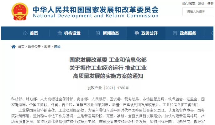 工業(yè)是國(guó)民經(jīng)濟(jì)的主體,工業(yè)穩(wěn)則經(jīng)濟(jì)穩(wěn)。近日,國(guó)家發(fā)展改革委、工業(yè)和信息化部發(fā)布《關(guān)于振作工業(yè)經(jīng)濟(jì)運(yùn)行 推動(dòng)工業(yè)高質(zhì)量發(fā)展的實(shí)施方案的通知》,以加快構(gòu)建新發(fā)展格局,做好宏觀政策預(yù)調(diào)微調(diào)和跨周期調(diào)節(jié),精準(zhǔn)打通產(chǎn)業(yè)鏈供應(yīng)鏈堵點(diǎn)卡點(diǎn),挖掘市場(chǎng)需求潛力,優(yōu)化發(fā)展環(huán)境,激發(fā)市場(chǎng)主體活力,振作工業(yè)經(jīng)濟(jì)運(yùn)行,推動(dòng)工業(yè)高質(zhì)量發(fā)展。