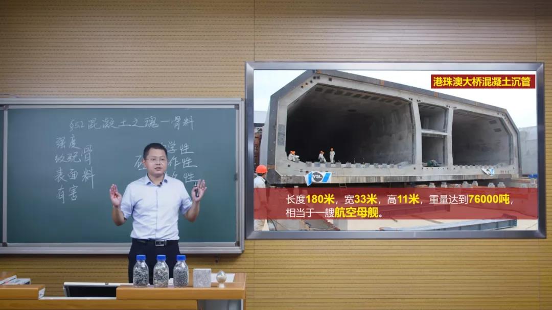 砂石骨料,使得混凝土沉管在華南地區(qū)高溫高濕高鹽的環(huán)境下?lián)碛?20年的使用壽命呢?通過(guò)這樣的問(wèn)題開(kāi)場(chǎng),卞立波形象且生動(dòng)地切回到課堂的主題。