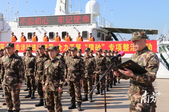 “‘獵砂’專項(xiàng)整治行動正式啟動。”隨著該局局長的一聲令下,海警艦艇汽笛齊鳴,紛紛駛向任務(wù)區(qū)域。