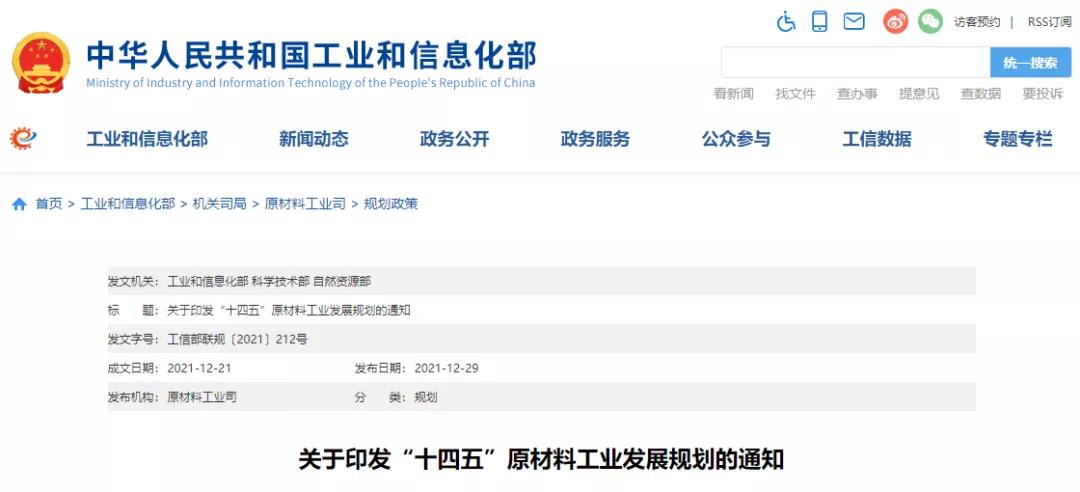 關于印發(fā)“十四五”原材料工業(yè)發(fā)展規(guī)劃的通知工信部聯(lián)規(guī)〔2021〕212號