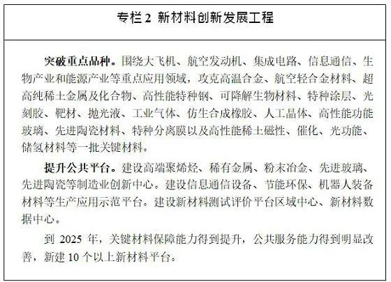 強化創(chuàng)新平臺載體支撐。鼓勵優(yōu)勢企業(yè)積極參與國家重點實驗室建設及體系重組,建設重點領域國家制造業(yè)創(chuàng)新中心,支持建立省級創(chuàng)新中心。支持轉制院所整合產業(yè)鏈和創(chuàng)新鏈,組建產業(yè)共性技術研究平臺,提升綠色選冶、高端加工、穩(wěn)定制備等工程化能力。支持地方結合本地實際采取多種形式建設國家重點新材料中試平臺。加大新材料產業(yè)計量測試中心、平臺和聯(lián)盟建設。繼續(xù)組織國家新材料生產應用示范、測試評價等平臺建設,協(xié)同推進產品設計、研制生產、系統(tǒng)驗證、批量應用。完善創(chuàng)新服務支撐體系,建立國家新材料科研設施公用平臺。建立新材料數據中心,提高數據服務產業(yè)發(fā)展的能力。