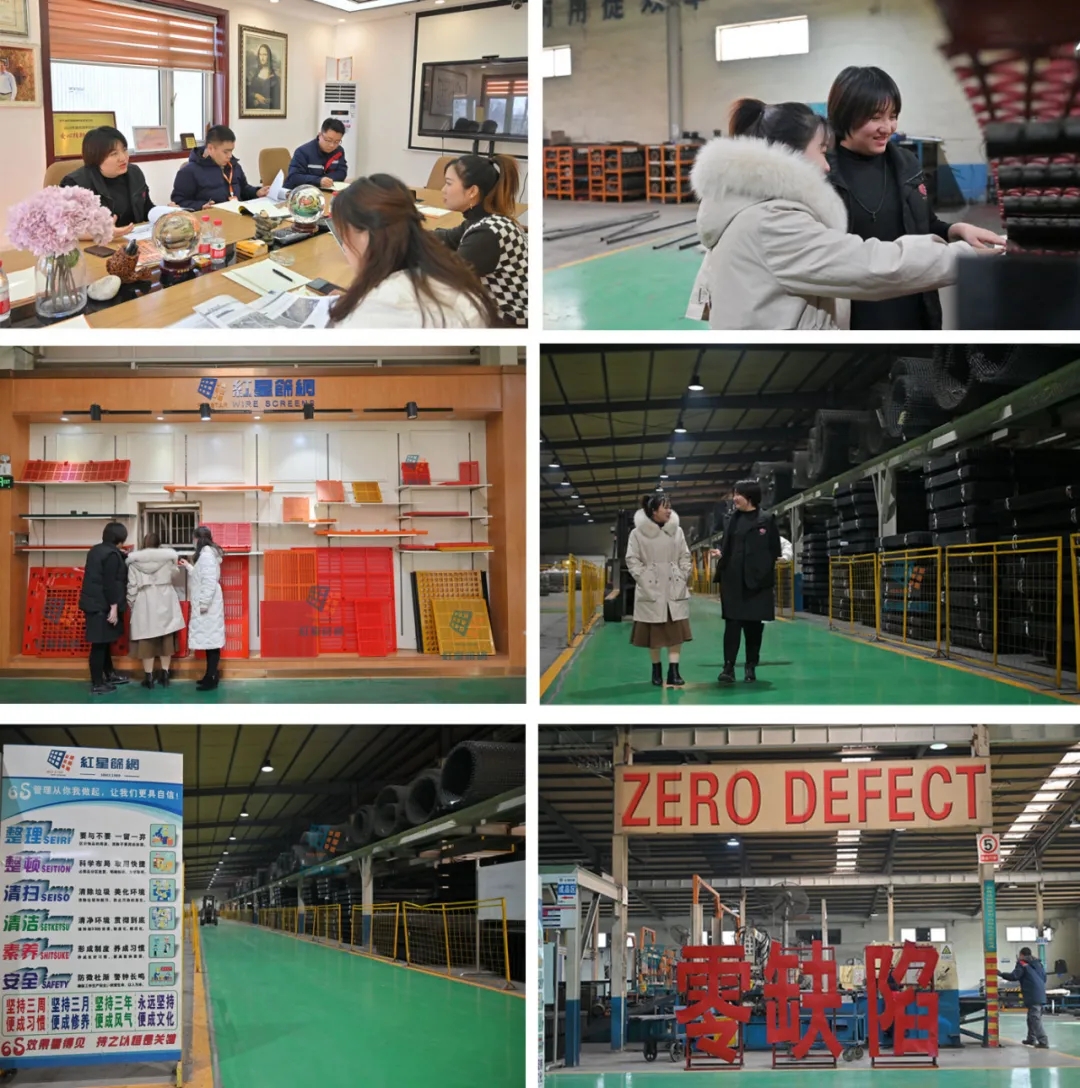 紅星篩網(wǎng)國(guó)內(nèi)市場(chǎng)總監(jiān)李紅梅帶領(lǐng)環(huán)球破碎機(jī)網(wǎng)營(yíng)銷總監(jiān)商倩先后參觀了紅星絲網(wǎng)制品有限公司廠區(qū)、樣品展示廳、各系列產(chǎn)品生產(chǎn)線以及研發(fā)中心。
