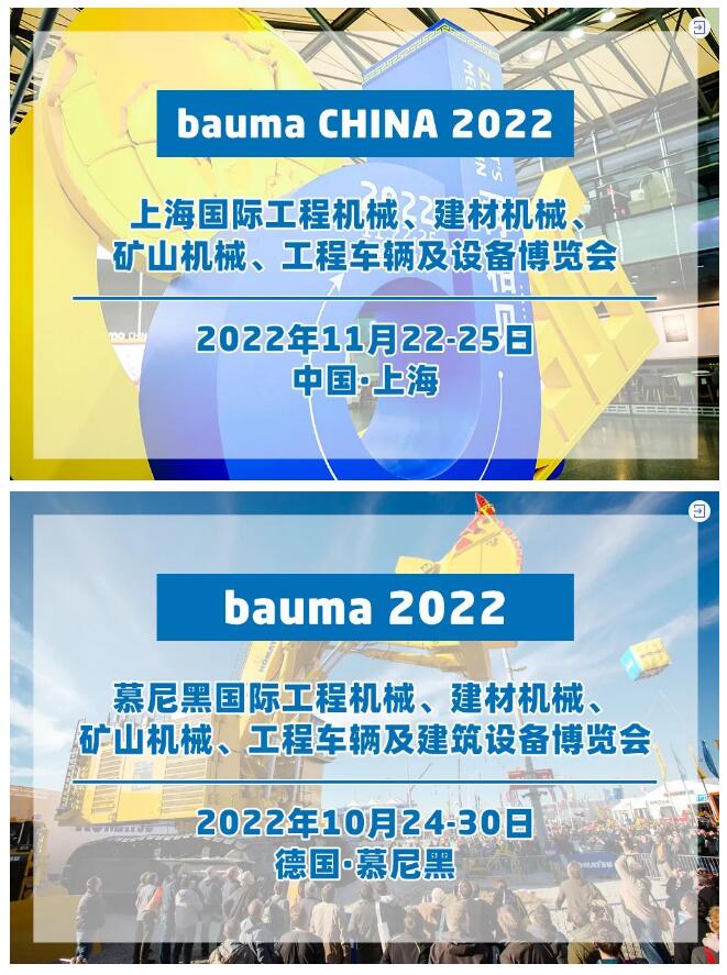 與此同時,三年一屆的全球工程機(jī)械行業(yè)重要盛事,德國bauma 2022也將于今年10月24-30日在慕尼黑展覽中心再度舉行。2022年展會將匯聚全球行業(yè)先鋒,在61.4萬平方米的展示面積上傾情呈現(xiàn)與工程機(jī)械全產(chǎn)業(yè)鏈相關(guān)的創(chuàng)新產(chǎn)品及前沿技術(shù)!