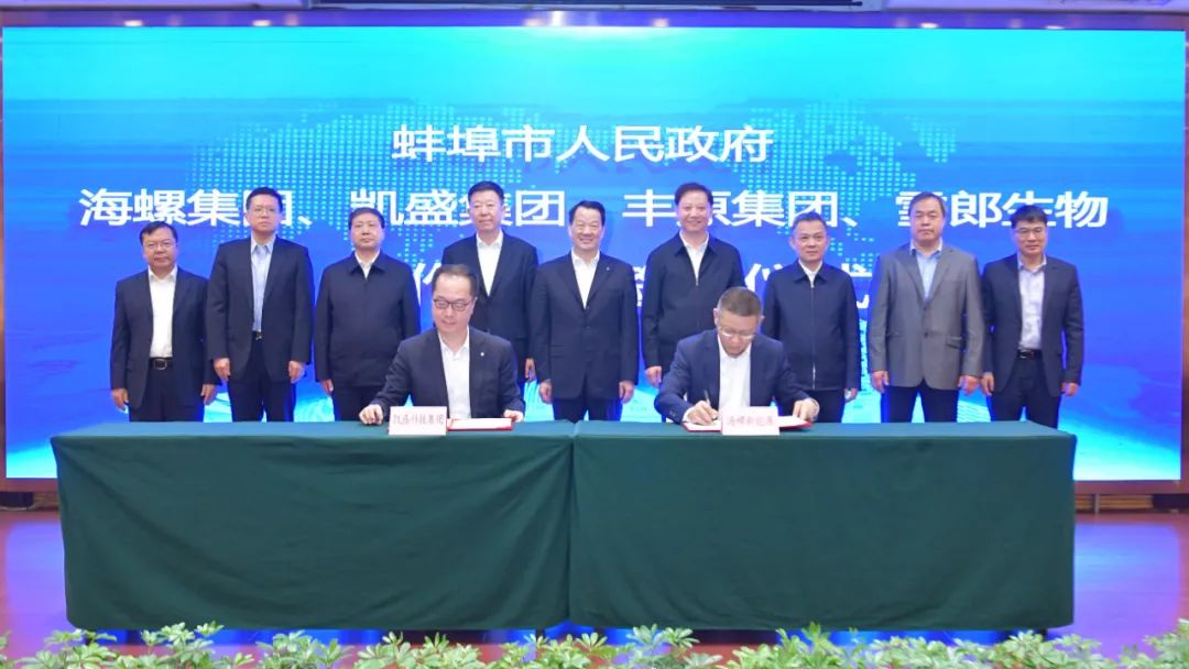 3月16日上午,安徽省蚌埠市人民政府與海螺集團、凱盛集團、豐原集團、雪郎生物合作項目簽約儀式舉行。市委書記黃曉武,中國工程院院士、中國建材集團總工程師、國家玻璃新材料創(chuàng)新中心理事長、中建材玻璃新材料研究總院院長彭壽,海螺集團黨委書記、董事長王誠在簽約儀式上致辭;市長操龍燦主持儀式;市政協(xié)主席楊森,市委常委、常務(wù)副市長葛銳,副市長潘君齊,安徽豐原集團、雪郎生物科技股份有限公司負(fù)責(zé)人出席。