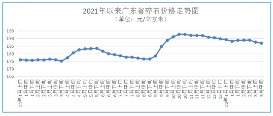 二、碎石和機制砂價格弱勢盤整。據(jù)監(jiān)測,3月中旬全省碎石平均購進價為每立方米187元,環(huán)比微跌0.37%。其中,珠三角和粵北地區(qū)碎石平均購進價分別為每立方米210元和156元,環(huán)比分別微跌0.76%和0.42%;粵西地區(qū)碎石平均購進價為每立方米134元,環(huán)比上漲1.51%;粵東地區(qū)碎石平均購進價為每立方米204元,環(huán)比持平。3月中旬全省機制砂平均購進價為每立方米160元,環(huán)比微跌0.26%。