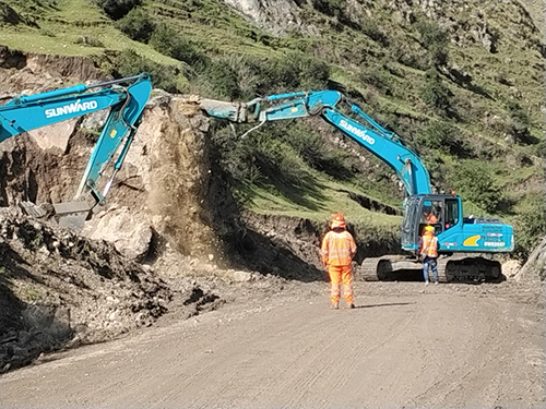 “公路的一側(cè)是懸崖峭壁,另一側(cè)是河流,工程的難度在于既要開山擴路,又要修建河堤保護路基。”在南美洲秘魯境內(nèi)安第斯山脈的國家公路項目進行施工的現(xiàn)場人員介紹,十余臺山河智能的挖掘機就是在這樣的艱苦條件下作業(yè),其中有幾臺設(shè)備的施工高度甚至在海拔4200米以上。