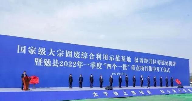 4月1日,國家級大宗固廢綜合利用示范基地漢西經(jīng)開區(qū)籌建處揭牌暨勉縣2022年一季度“四個(gè)一批”重點(diǎn)項(xiàng)目開工儀式在勉縣舉行。集中開工國家級大宗固廢綜合利用示范基地建設(shè)等項(xiàng)目44個(gè),總投資274.62億元,年度投資48.43億元。