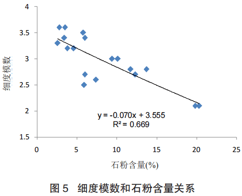 1.4 機制砂細(xì)度模數(shù)與石粉含量分析