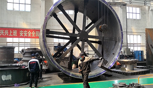 龍信重工車間,直徑7米的大齒圈、直徑5米的