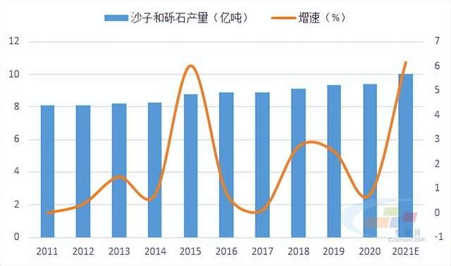 圖2-3:2021年建筑用沙子和礫石產(chǎn)量及增速