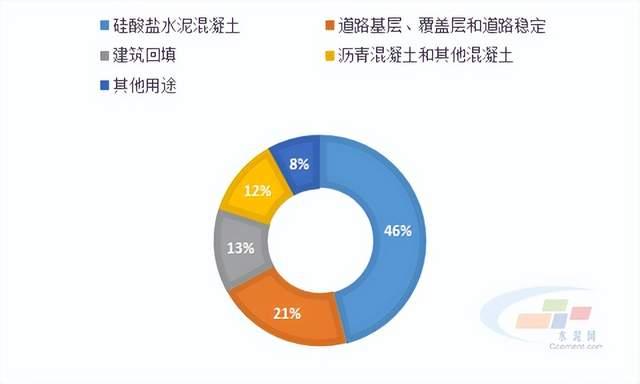 混凝土骨料,21%用作道路基層、覆蓋層和道路穩(wěn)定,13%用作建筑回填,12%用作瀝青混凝土骨料和其他瀝青混合料,8%用作其他用途(混凝土產(chǎn)品、過濾、高爾夫球場維護、石膏和噴射砂、鐵路壓載物、道路穩(wěn)定、屋頂顆粒和冰雪控制等)。