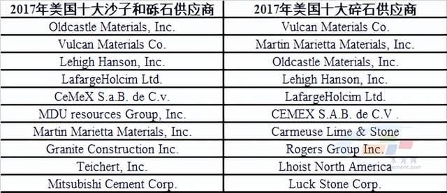根據(jù)美國地質局發(fā)布的相關年鑒(最新為2017年),碎石CR10(按產(chǎn)量)為47%,沙子和礫石CR10(按產(chǎn)量)為48%。