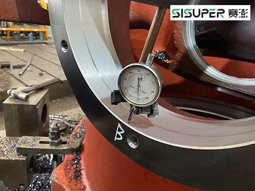 賽澎作為專業(yè)的破碎篩分設(shè)備零部件供應(yīng)商,堅(jiān)持品質(zhì)打造精品,嚴(yán)苛把控產(chǎn)品質(zhì)量。公司生產(chǎn)的SHP500圓錐破碎機(jī)機(jī)架,通過千分表檢測,千分表指針始終在0位,主軸孔精度,保證主軸安裝孔面尺寸,使軸與孔裝配面完全接觸。
