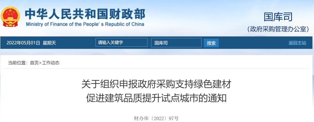 關(guān)于組織申報政府采購支持綠色建材促進建筑品質(zhì)提升試點城市的通知