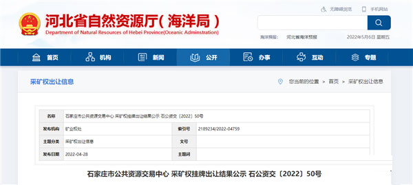 4月28日,河北省自然資源廳發(fā)布井陘縣兩個建筑石料用灰?guī)r礦區(qū)采礦權(quán)出讓結(jié)果公示,兩個礦區(qū)總資源量超3.4億噸,總成交價超4.5億元。