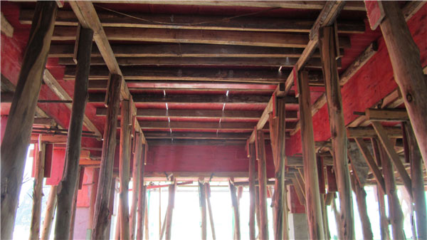 圖3 木棍代替腳手架且兼間距偏大