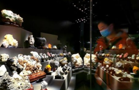 圖為青海省一博物館展示的礦產(chǎn)資源
