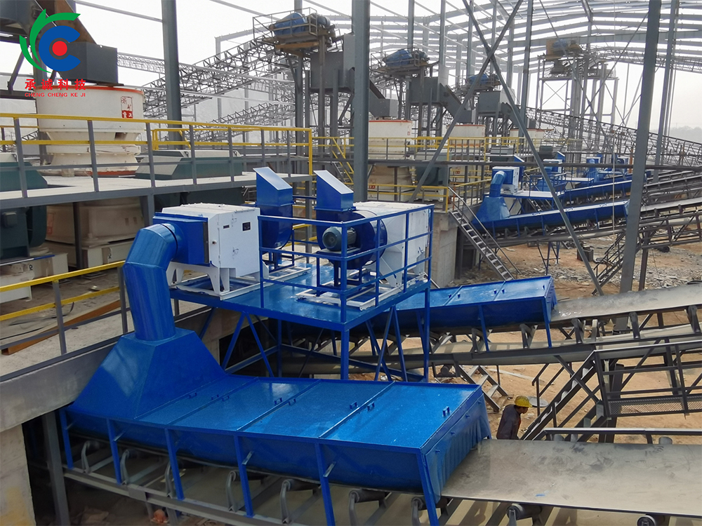 砂石生產(chǎn)線系統(tǒng)除塵的理念,在實(shí)際運(yùn)行中,承誠公司的水膜除塵系統(tǒng)技術(shù)投入成本不高,生產(chǎn)線的治理效果很好,每噸至少節(jié)約1.5元電費(fèi)。