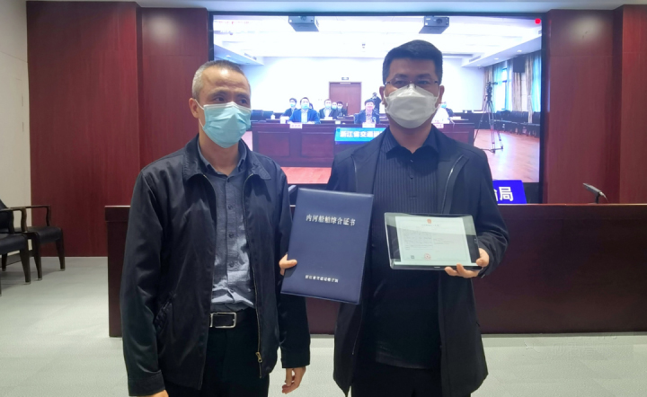 此前,浙江省港航管理中心主任葉紅在深化內(nèi)河船舶“多證合一”改革推進會上宣布正式全面啟用《內(nèi)河船舶綜合證書》,并在4月29日向湖州天泰航運有限公司船舶“浙湖州貨5819”發(fā)出全國首張《內(nèi)河船舶綜合證書》電子證書。