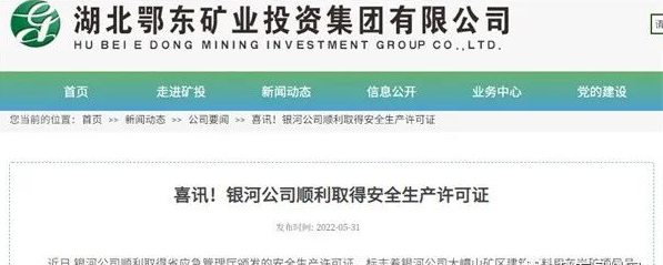 早在項目實施初期,為加快手續(xù)辦理,實現(xiàn)早投產(chǎn)、早見效,銀河公司結合礦山實際,開創(chuàng)性的提出“礦山分東西采區(qū)同時設計、同時基建、分期驗收、分期開采”的建設思路,并得到湖北省應急管理廳和有關專家的大力支持。在此基礎上,通過統(tǒng)籌部署,快速推進落實各項行政審批手續(xù)辦理,解決礦地關系等一系列難題,大嶂山項目于2021年12月全面啟動建設,僅用四個多月時間完成了東采區(qū)全部基建工程,并通過驗收。安全生產(chǎn)許可證的取得,將使大嶂山項目提前一年投產(chǎn)見效。