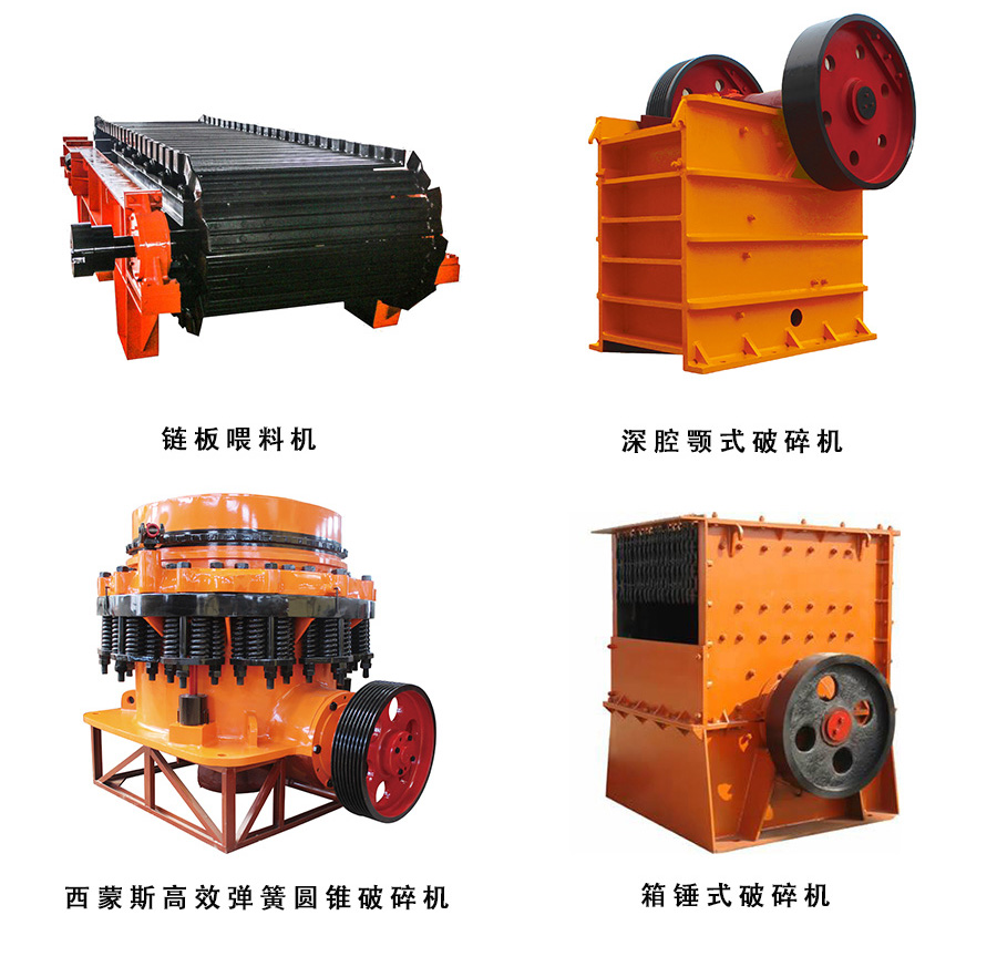 圓錐式破碎機(jī)、錘式破碎機(jī)、立軸沖擊式破碎機(jī)、制砂機(jī)、洗砂機(jī)、喂料機(jī)、振動篩、膠帶輸送機(jī)、除塵器以及箱式低壓電控設(shè)施等成套碎石生產(chǎn)設(shè)備。