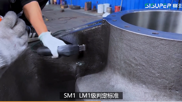 賽澎SHP200-SHP500系列產品:動錐體、動錐體、配重、定錐體、主機架體、主軸、調整環(huán)、 鎖緊環(huán)、偏心等零部件賽澎SCH440-SCH880系列產品:偏心鋼套、液壓缸體、主軸、動錐體,下架體,上架體、防塵 罩等零部件均通過了磁粉探傷檢測,確保產品品質。