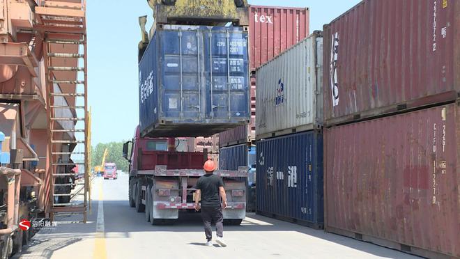砂石集裝箱正在卸載。作為泗陽混凝土龍頭企業(yè),江蘇八堡人家建材有限公司積極響應(yīng)國家號召,與泗陽港合作,走綠色物流運輸路線。