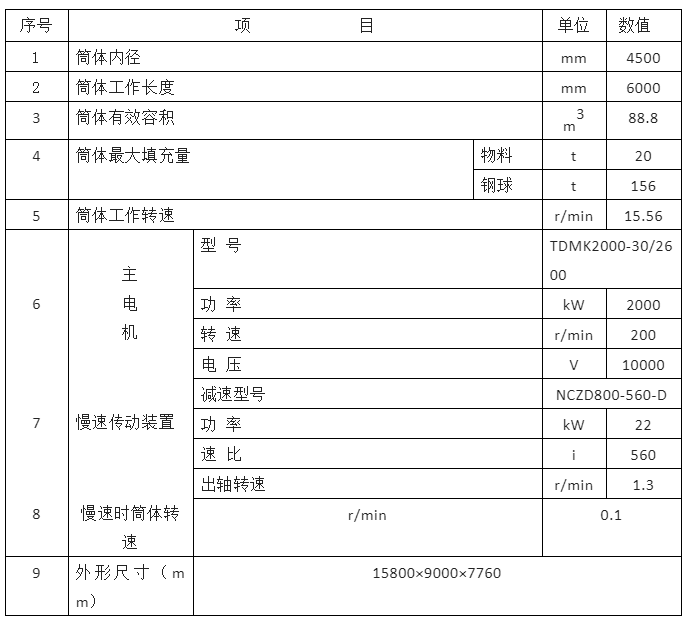 MQY4560型球磨機(jī),筒體有效長(zhǎng)度為6000,筒體直徑為4500,磨機(jī)填充介質(zhì)為鋼球。