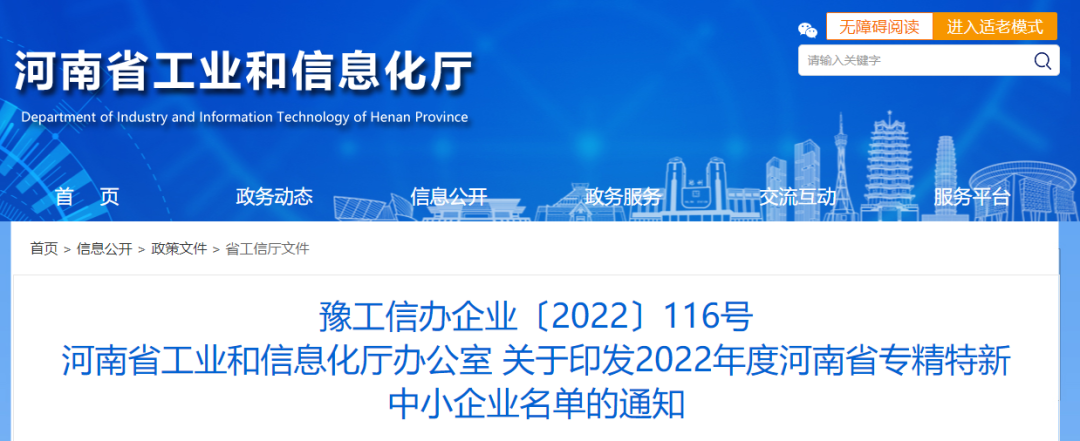 焦作千業(yè)入選2022年度河南省專精特新中小企業(yè)