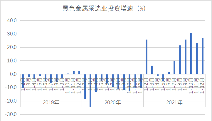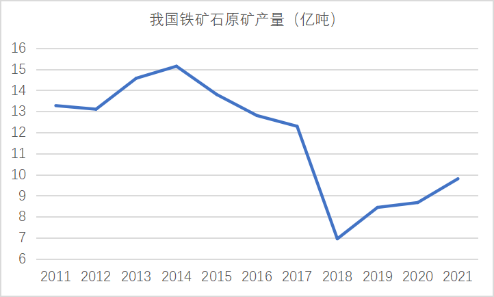 根據(jù)國家統(tǒng)計局發(fā)布的最新數(shù)據(jù),2021年,我國黑色金屬礦采選業(yè)固定資產(chǎn)投資額增長26.9%,增速創(chuàng)近十年新高。根據(jù)相關資料,2021年1-11月份,根據(jù)不完全統(tǒng)計,僅河北省共批復鐵礦石相關項目155個,已經(jīng)遠遠超過2020年全年89個項目審批數(shù)量。對應地,2021年國內(nèi)生產(chǎn)鐵礦石原礦產(chǎn)量達到98052.8萬噸,同比增長9.4%。