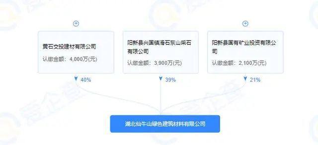 據(jù)中國砂石網(wǎng)了解到,湖北省陽新縣仙牛山礦區(qū)建筑石料用白云巖礦采礦權(quán)競得人—湖北仙牛山綠色建筑材料有限公司屬于國有控股企業(yè),由黃石交投建材有限公司控股40%,陽新縣興國鎮(zhèn)滑石東山采石有限公司控股39%,國有企業(yè)陽新縣國有礦業(yè)投資公司控股21%控股。其中黃石交投建材有限公司為黃石市人民政府國有資產(chǎn)監(jiān)督管理委員會100%控股。