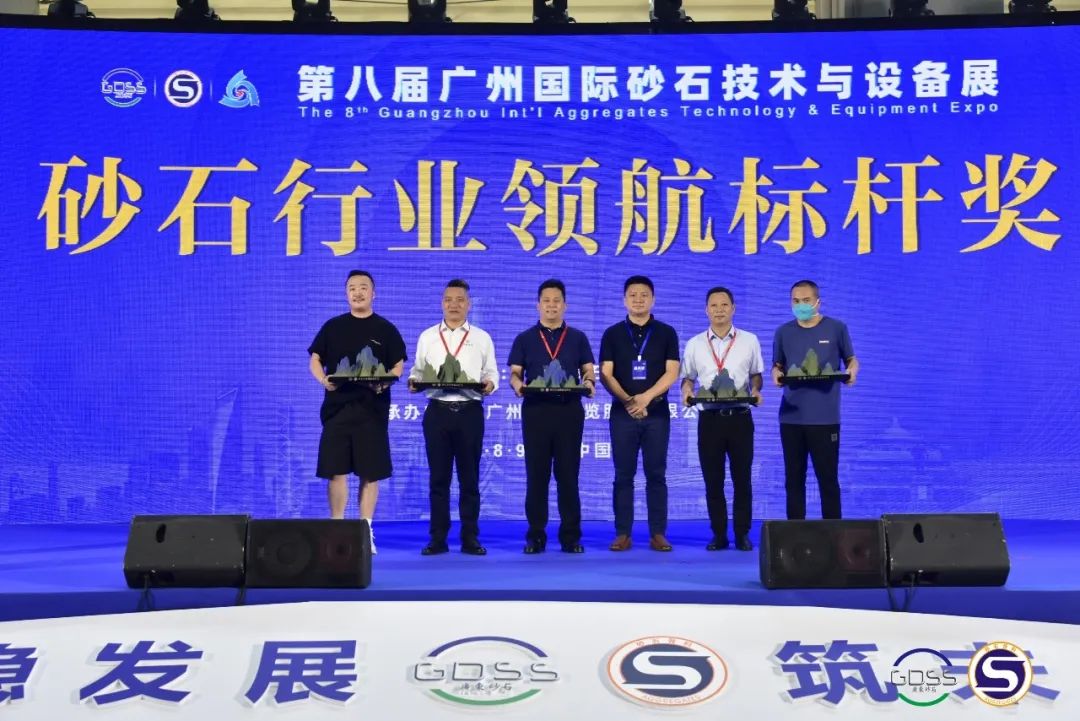 在這共同度過的八屆砂石展里,這些參展商在展會現(xiàn)場提交了成交額17.72億元的滿分成績單,為表達對眾多設備企業(yè)的支持,廣東省砂石分會會長賴志光、監(jiān)事長魏泓方為巨和工程、同力重工、廣東譽華、順達重礦、磊蒙集團、宇通礦卡、韶瑞重工、龍粵環(huán)保、浙礦重工、華寶礦機、鞍重等企業(yè)頒發(fā)了砂石行業(yè)領航標桿獎。