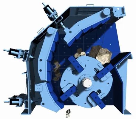 彈簧裝置在過載或出現(xiàn)不能破碎的物料時,回拉反擊板,而后反擊板自動回到初始位置。
