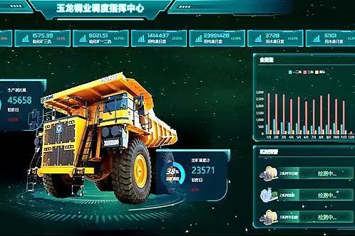 在采礦智能化生產(chǎn)調(diào)度中心,生產(chǎn)數(shù)據(jù)大屏幕實時顯示車輛分布,自動規(guī)劃采礦作業(yè)生產(chǎn)計劃。通過采礦系統(tǒng)的建設(shè),實現(xiàn)地質(zhì)、測量、采礦設(shè)計數(shù)字化、生產(chǎn)調(diào)度指揮智能化、采礦安全監(jiān)管實時化、設(shè)備和能耗管控自動化、礦山生產(chǎn)及設(shè)備無人值守。