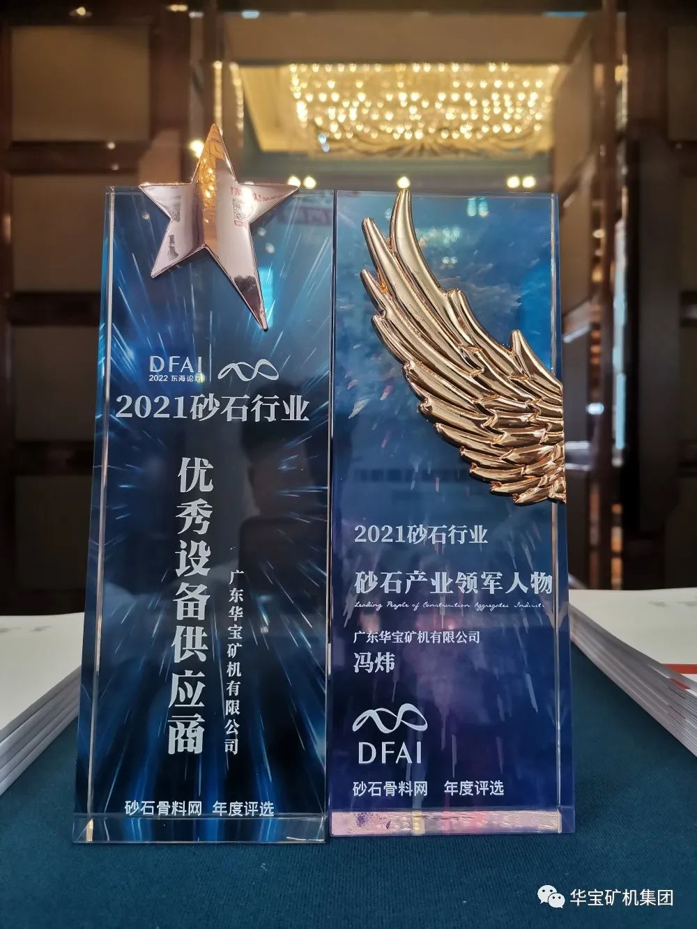 在“全國(guó)砂石產(chǎn)能TOP20獨(dú)家發(fā)布儀式-砂石骨料年會(huì)”頒獎(jiǎng)活動(dòng)中,華寶礦機(jī)集團(tuán)董事長(zhǎng)馮煒先生榮獲2021砂石行業(yè)“砂石產(chǎn)業(yè)領(lǐng)軍人物”的殊榮;華寶礦機(jī)集團(tuán)榮獲2021砂石行業(yè)“優(yōu)秀設(shè)備供應(yīng)商”的榮譽(yù)稱號(hào)。