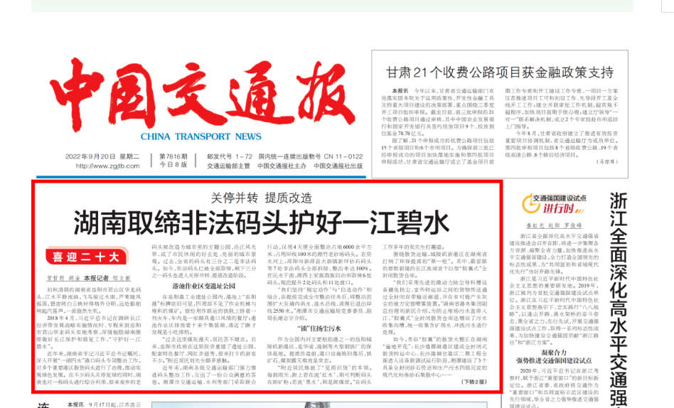 近年來,湖南省牢記習(xí)近平總書記囑托,深入開展“一湖四水”港口碼頭專項整治工作,對多個重要港區(qū)散貨碼頭進(jìn)行了治理,推動實現(xiàn)綠色發(fā)展。在不少碼頭關(guān)停復(fù)綠的同時,湖南也對一些碼頭進(jìn)行綜合利用,原來廢棄的老碼頭被改造為城市里的主題公園、沿江風(fēng)光帶,成了市民休閑的好去處、亮麗的城市景觀。過去,全省的碼頭有三分之二是非法碼頭。如今,非法碼頭已被全部取締,剩下三分之一碼頭也進(jìn)入關(guān)停并轉(zhuǎn)、提質(zhì)改造階段。