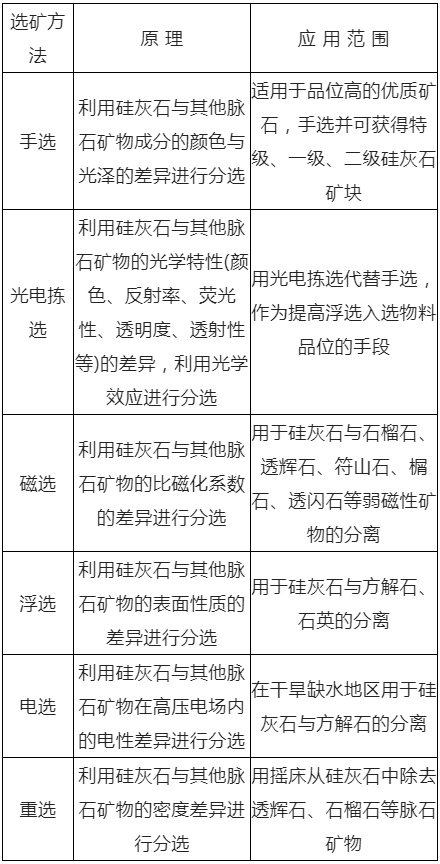 硅灰石的主要選礦加工方法