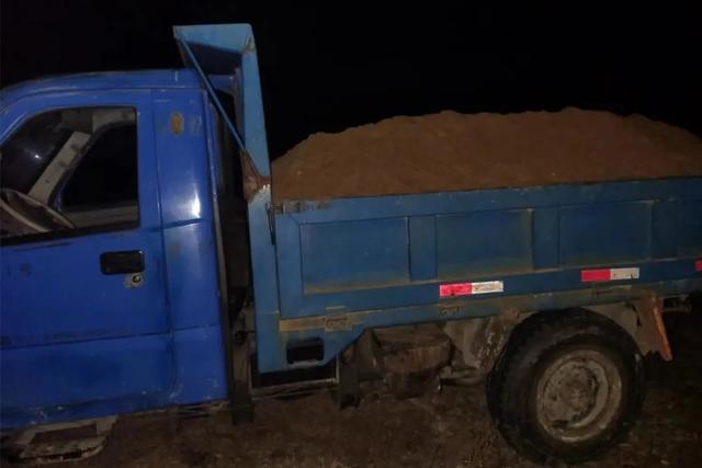 10月13日夜里,孫鐵鋪派出所民警在巡邏中發(fā)現(xiàn),轄區(qū)劉渡村后陳灣通往竹竿河的便道上有新的車轍印,地上灑落有部分河砂。根據(jù)以往經(jīng)驗,民警推斷可能有人到河岸邊盜采河砂,巡邏民警、輔警于是徒步沿便道進行巡查。