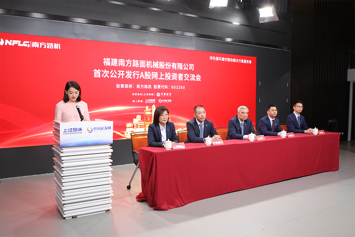 路演現(xiàn)場,福建南方路面機械股份有限公司董事長方慶熙先生發(fā)表致辭,表示,未來南方路機將繼續(xù)堅持專業(yè)化經(jīng)營戰(zhàn)略和國際化發(fā)展戰(zhàn)略,提升數(shù)字化、智能化水平,實現(xiàn)工業(yè)化和信息化深度融合,為客戶提供工程攪拌領(lǐng)域的建材生產(chǎn)及資源化再生利用整體解決方案。公司將借助資本市場這一更高的平臺,不斷創(chuàng)新發(fā)展,為客戶提供更優(yōu)質(zhì)的產(chǎn)品,為股東創(chuàng)造更高的價值,為社會貢獻(xiàn)更多的財富!