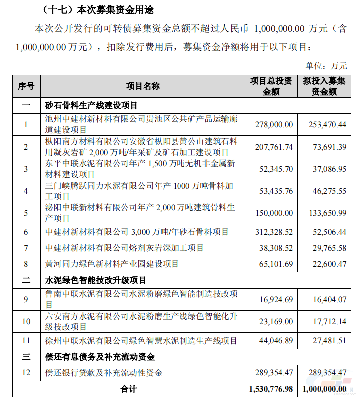 項(xiàng)目、水泥綠色智能技改升級(jí)項(xiàng)目、償還有息債務(wù)及補(bǔ)充流動(dòng)資金。