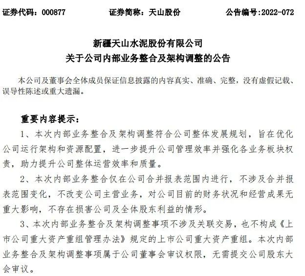 7、川渝水泥:計(jì)劃由西南水泥有限公司吸收合并四川西南水泥有限公司、四川利森建材集團(tuán)有限公司和重慶中建材新材料有限公司,管理相關(guān)子公司,西南水泥有限公司現(xiàn)注冊(cè)資本為117億元人民幣,新天山水泥持有 95.72%股權(quán)。