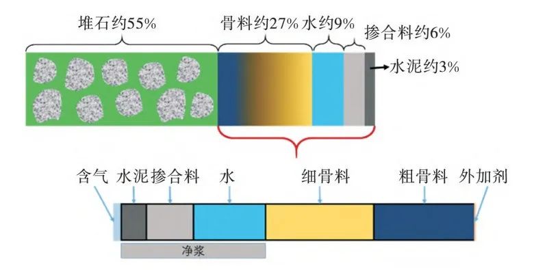 砂石協(xié)會(huì)獲悉,堆石混凝土是由大塊堆石和高自密實(shí)性能混凝土組成的非均質(zhì)材料,其中堆石一般要求粒徑在300mm 以上,堆石體一般占總體積的55%,混凝土的粗細(xì)骨料約27%。堆石混凝土中砂石料總占比約為82%。
